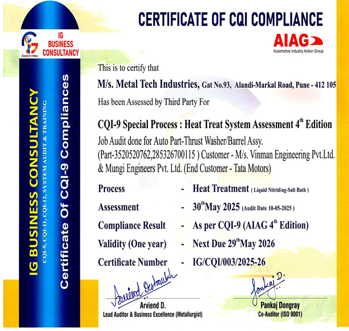 Metal Tech Industries began in 1999, especially in the field of Hard Chrome Plating. Latter on it introduced various other processes viz Forging, Machining, Liquid Nitriding (Bath Nitriding),Heat Treatmentand Manufacturing of I.C. Engine Valves. With a motto of par
